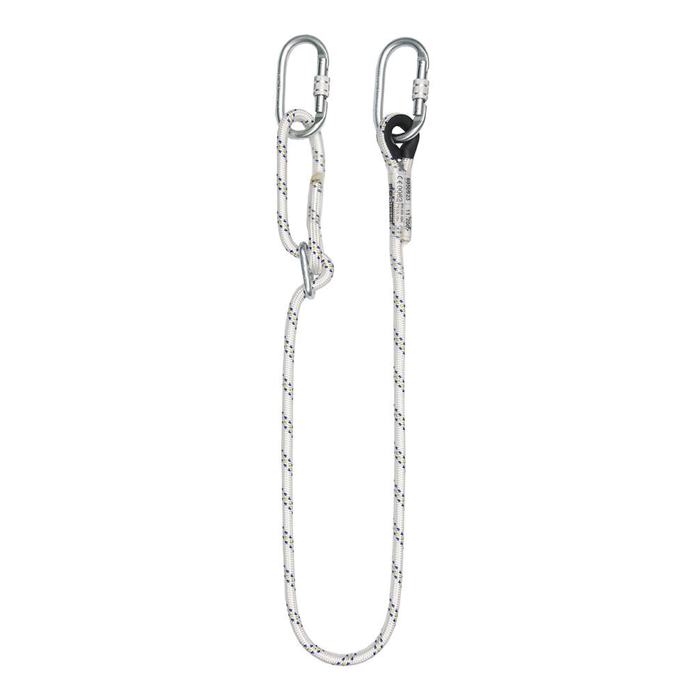 Modelul dispune de sistem de reglare a lungimii (până la 1,4 m) și este echipat cu două carabini AZ011 realizate din oțel galvanizat, asigurând o prindere sigură și rapidă de punctele de ancorare sau de hamul de protecție.