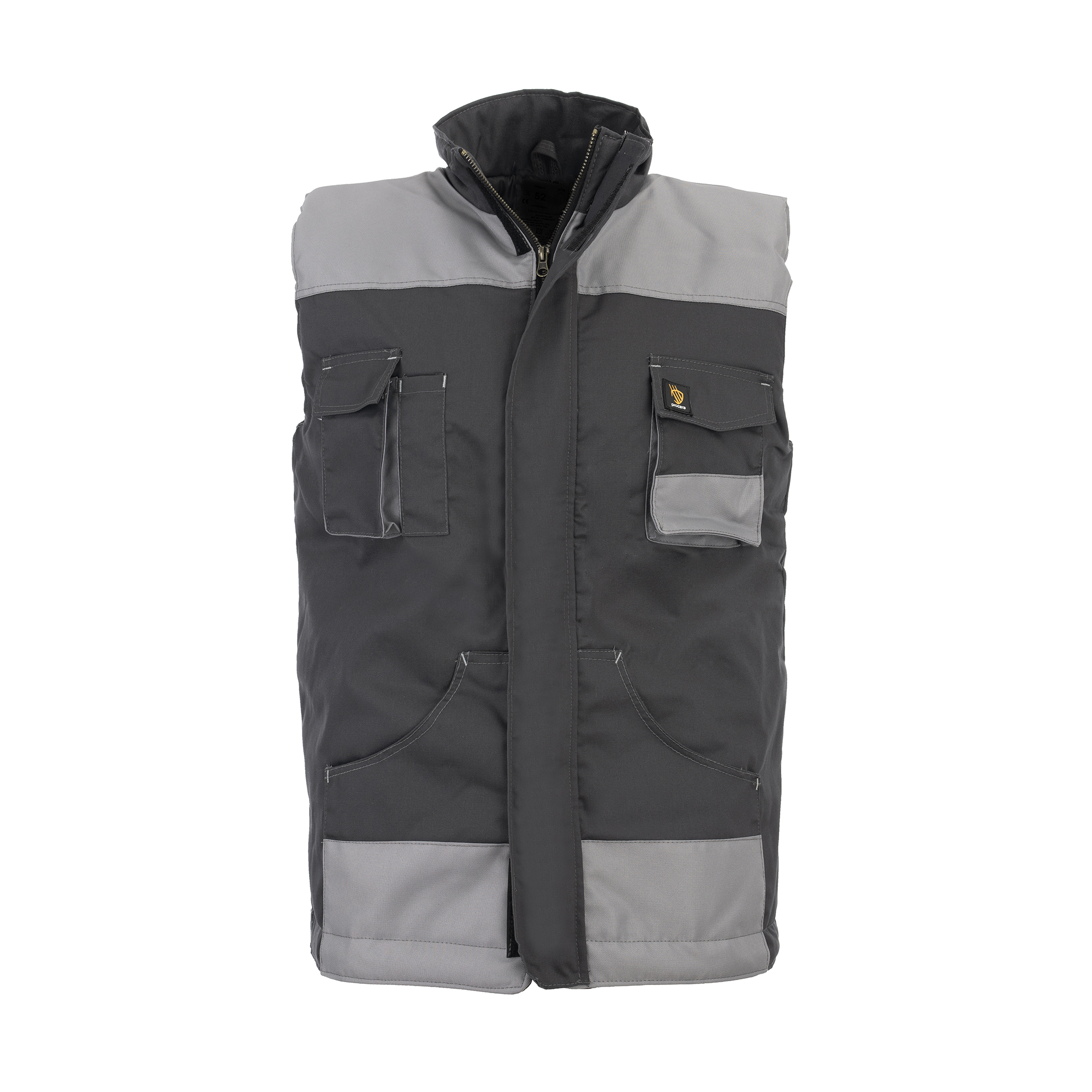 Bezrękawnikul este realizat dintr-o combinație de 65% poliester și 35% bumbac, având o gramatură de 260 g/m², ceea ce îl face ideal pentru utilizarea în condiții de temperaturi variate. Este dotat cu un sistem de închidere cu fermoar, protejat de o listă cu arici, asigurând astfel o izolare optimă. Designul său include două buzunare pe piept, dintre care unul este special conceput pentru a găzdui un smartphone, iar celălalt este o buzunară lungă, perfectă pentru obiecte precum creioane. De asemenea, pe partea opusă se află un buzunar cu închidere pe arici și două buzunare inferioare suplimentare, oferind un spațiu generos pentru depozitare.